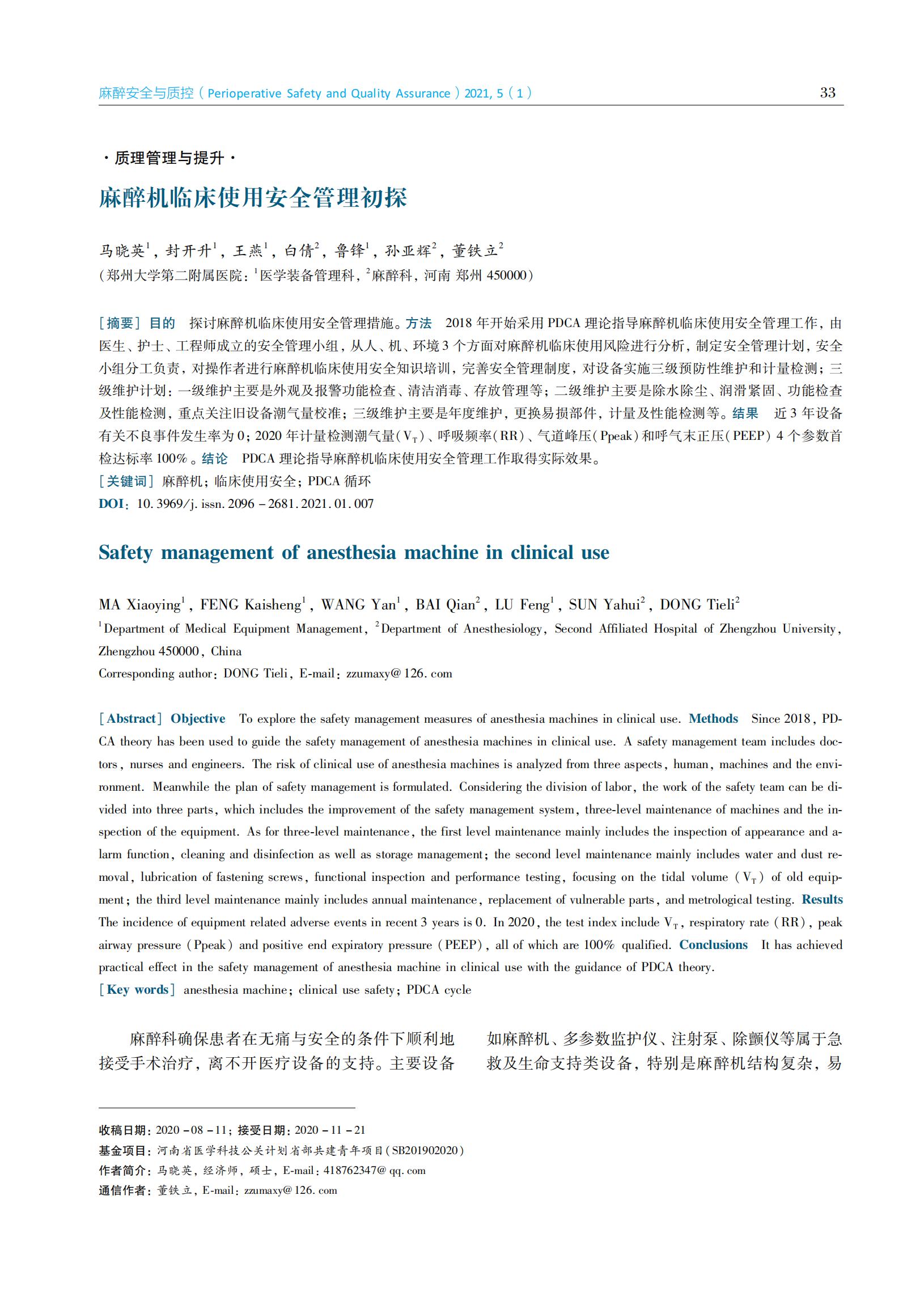 麻醉机临床使用安全管理初探