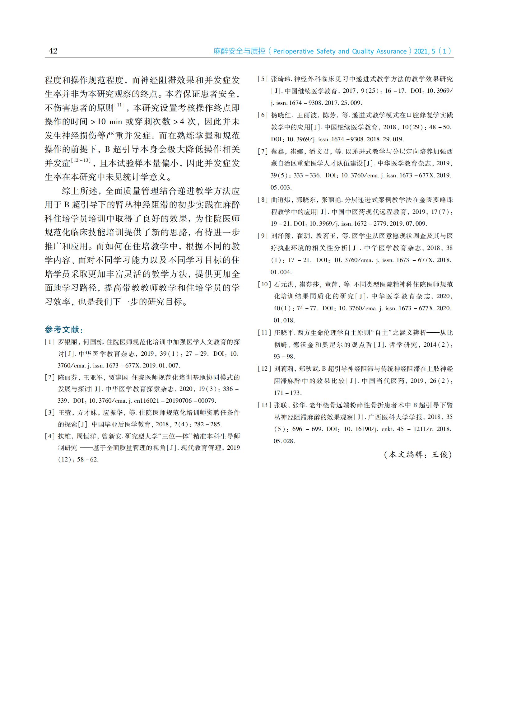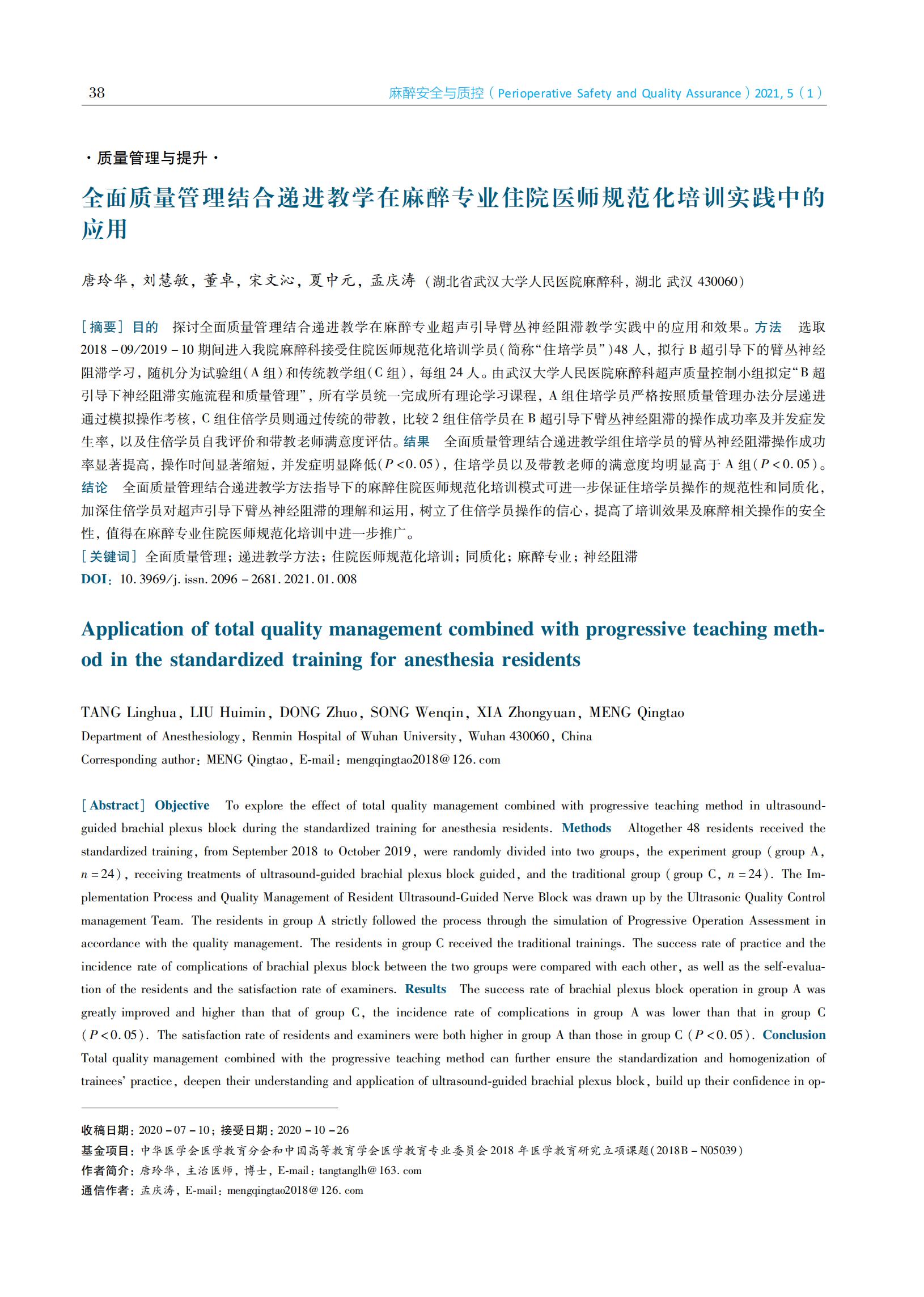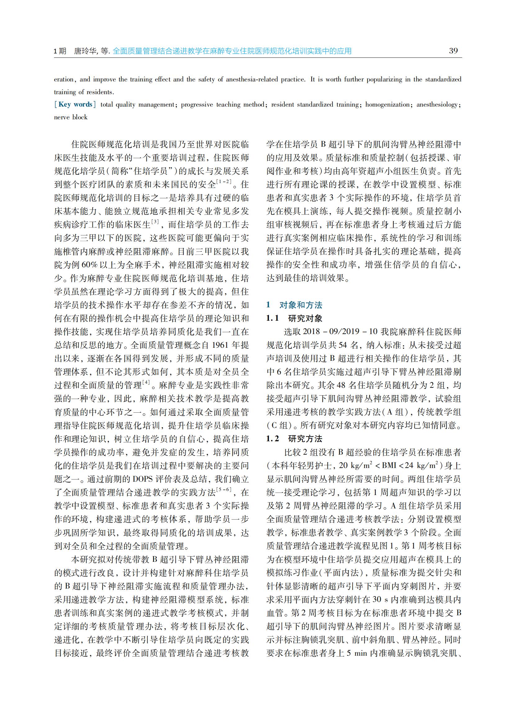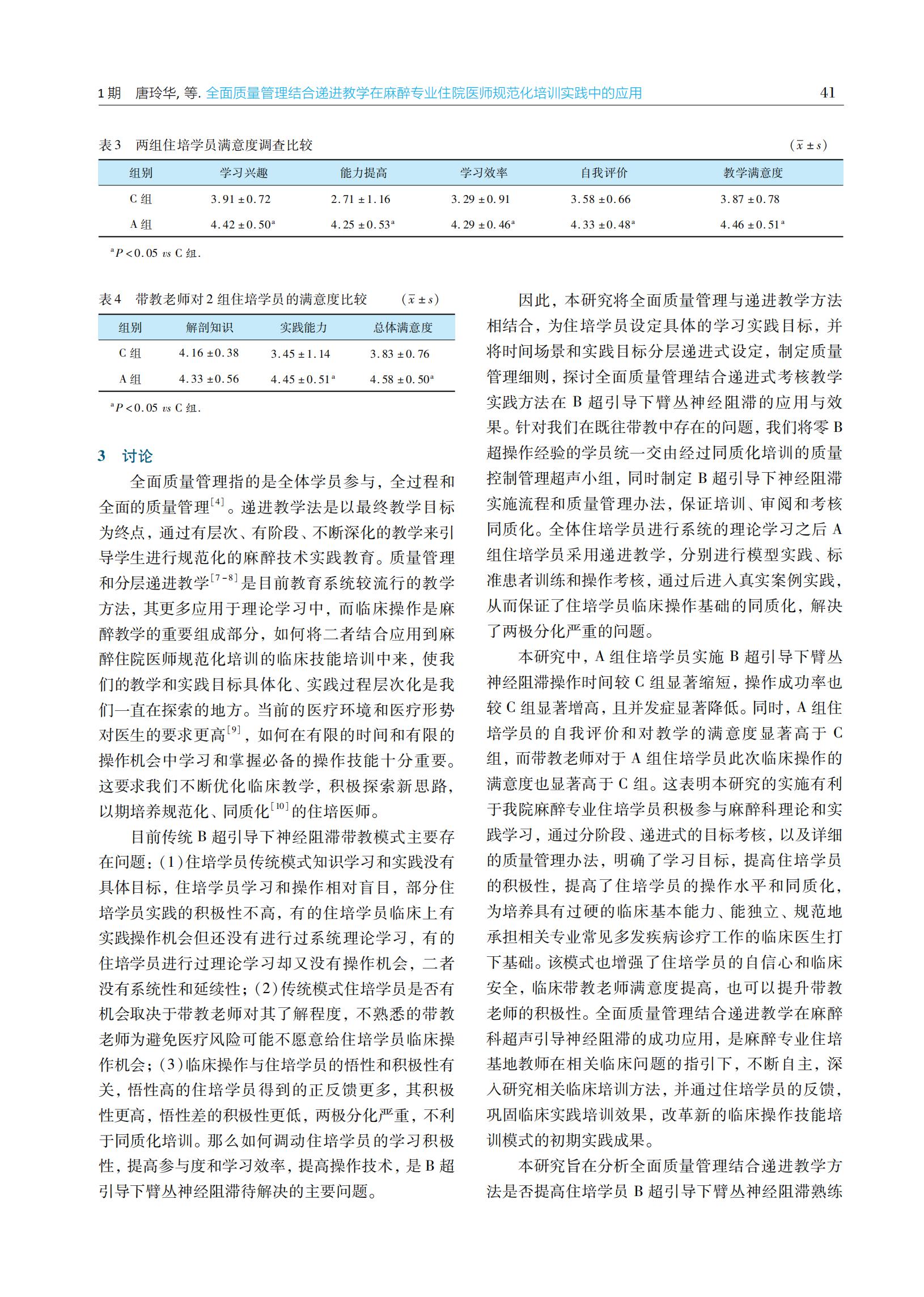 全面质量管理结合递进教学在麻醉专业住院医师规范化培训实践中的应用