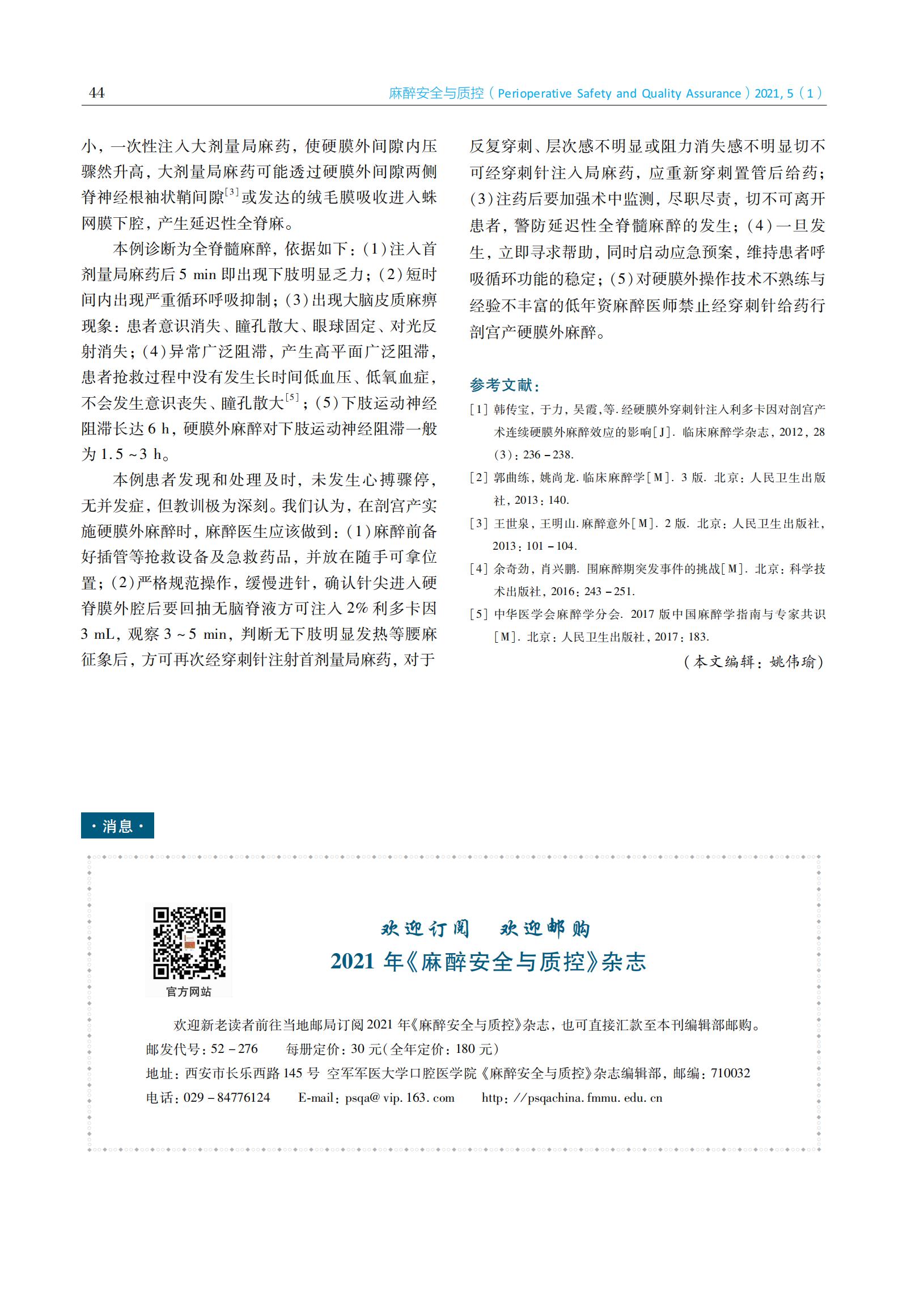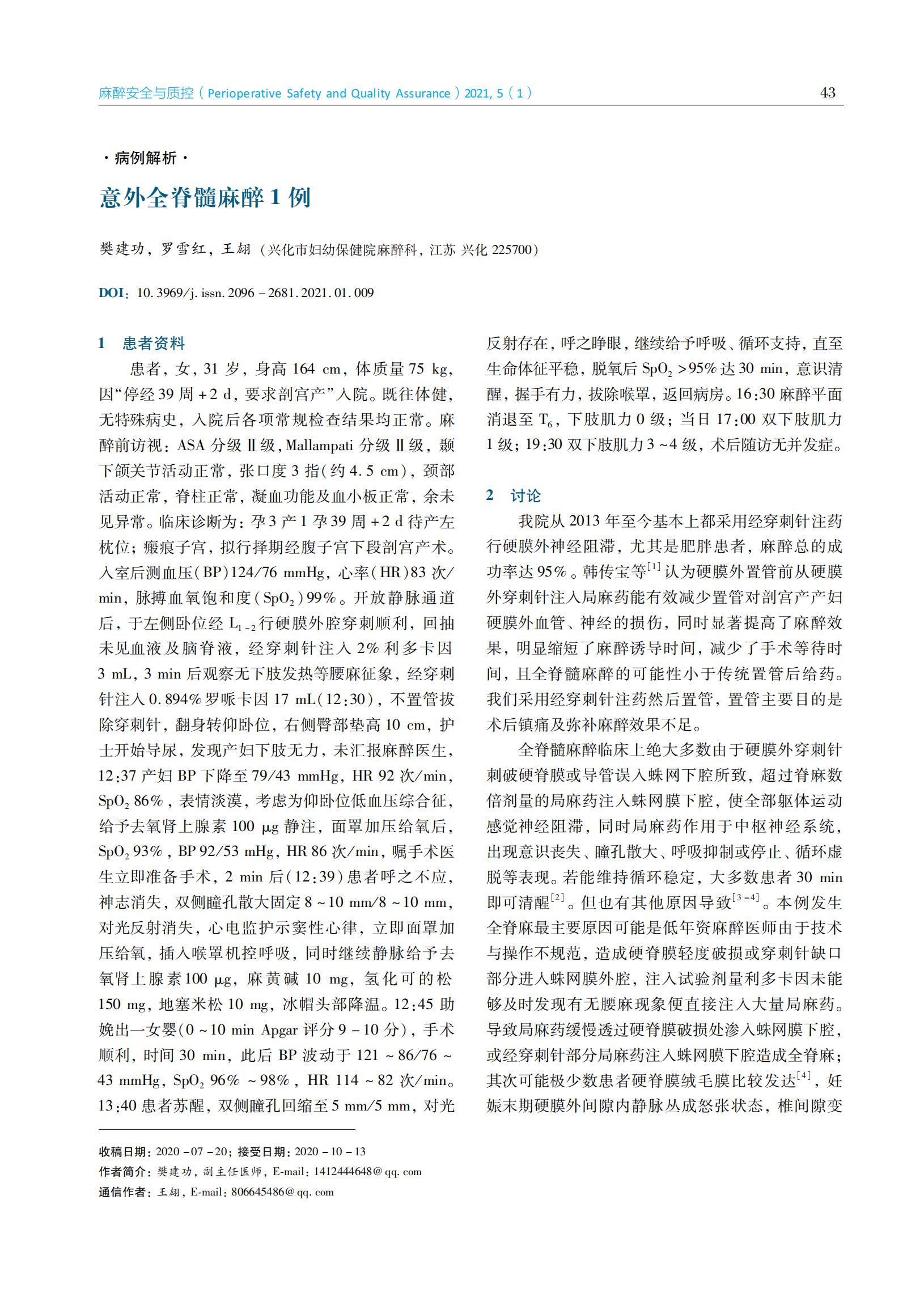 意外全脊髓麻醉1例
