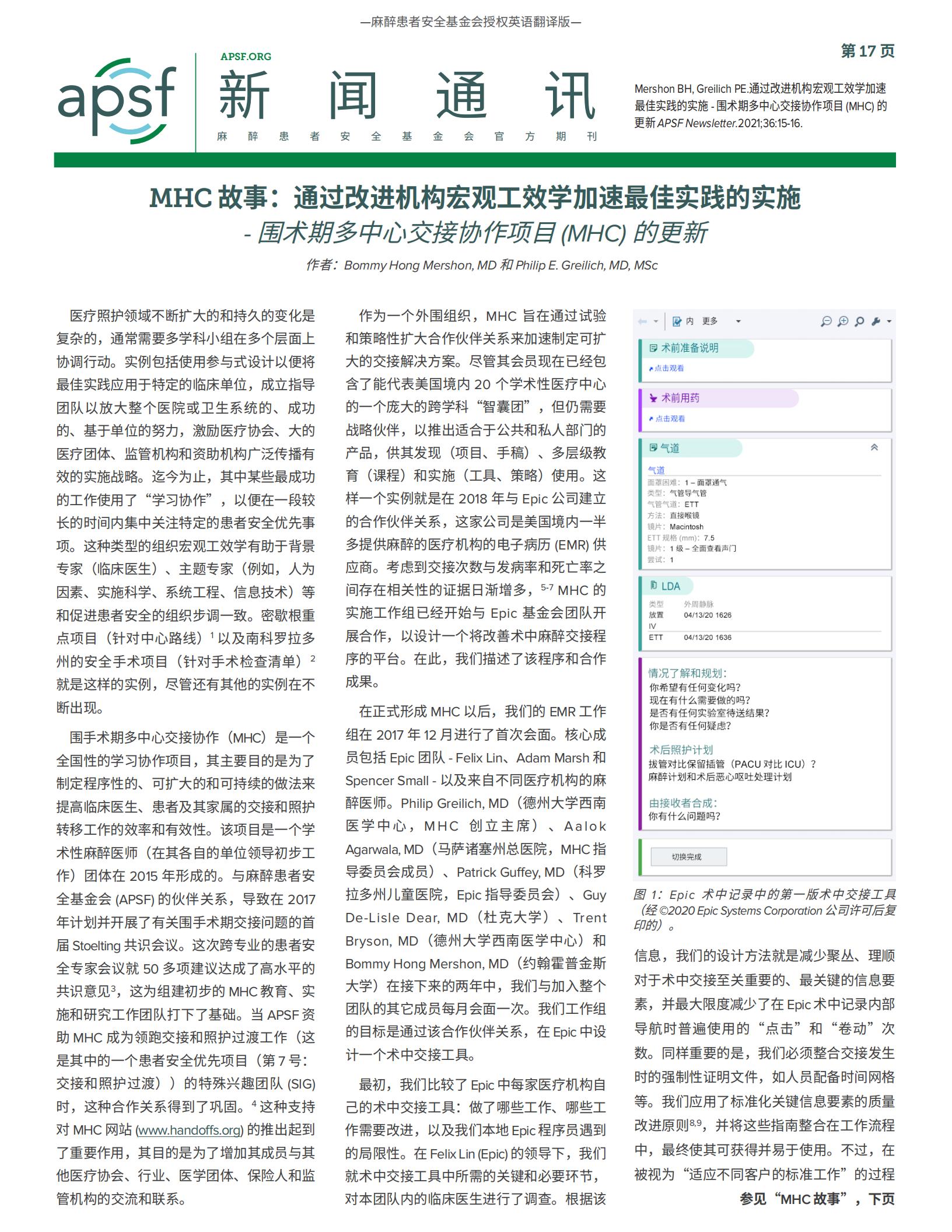MHC 故事:通过改进机构宏观工效学加速最佳实践的实施 - 围术期多中心交接协作项目 (MHC) 的更新