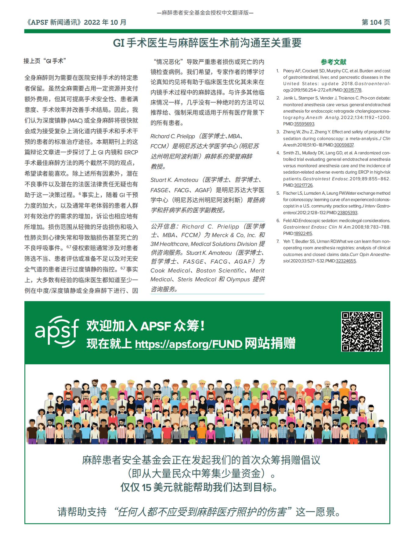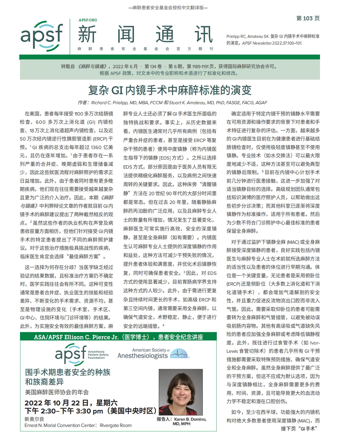 【APSF新闻通讯】复杂 GI 内镜手术中麻醉标准的演变