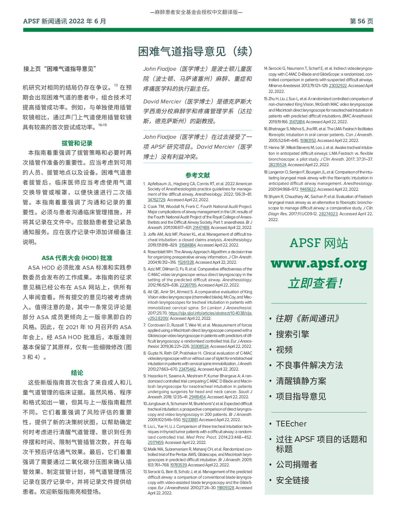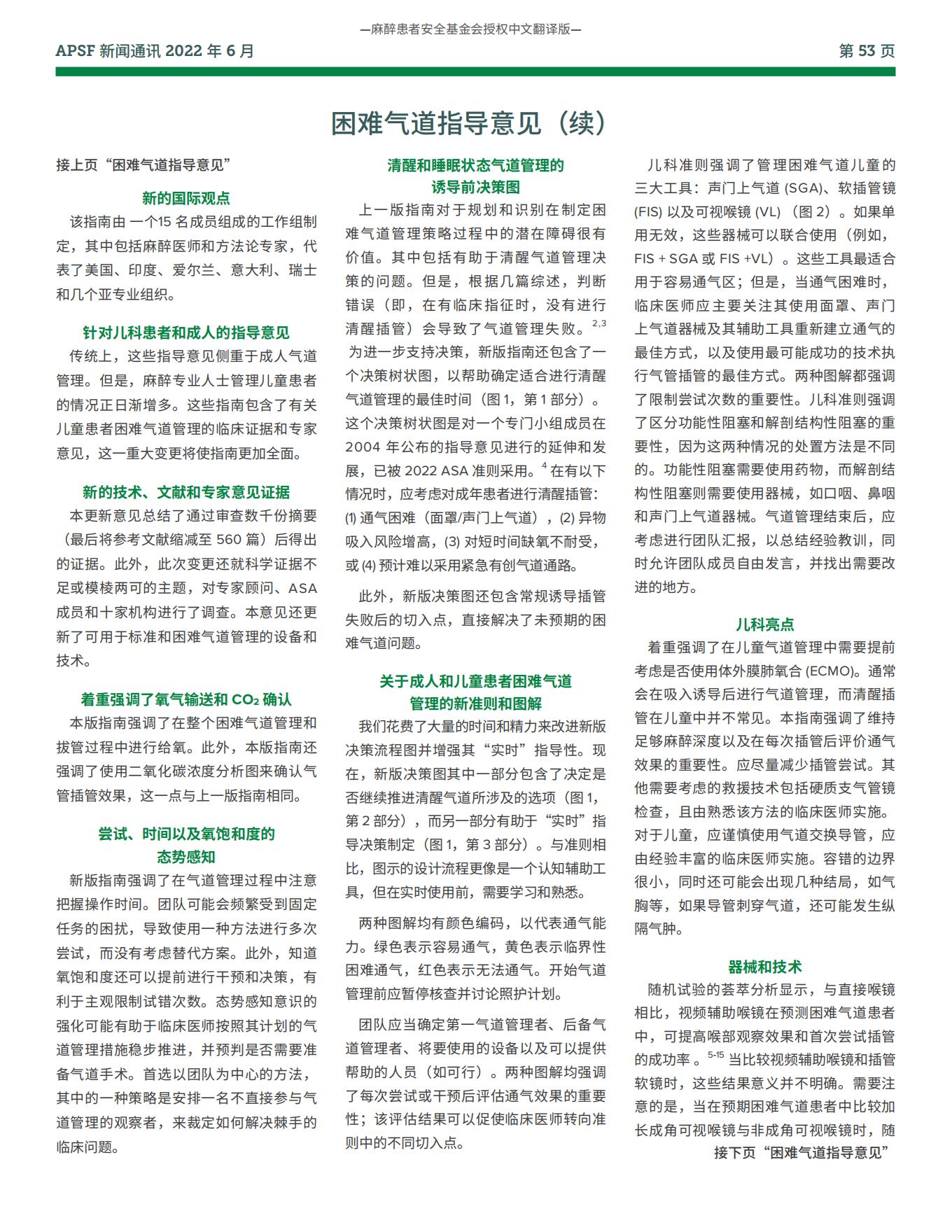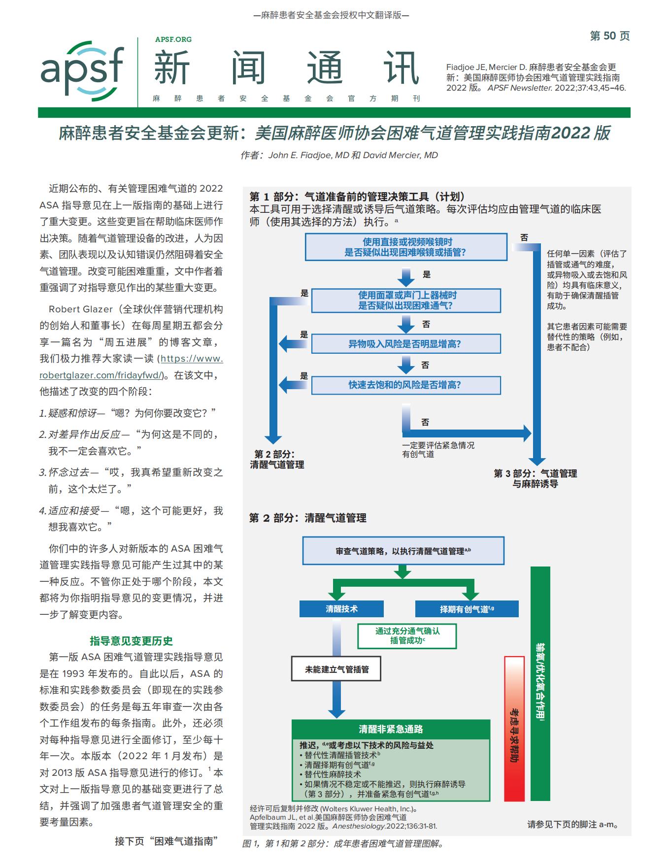 【APSF新闻通讯】麻醉患者安全基金会更新:美国麻醉医师协会困难气道管理实践指南2022 版