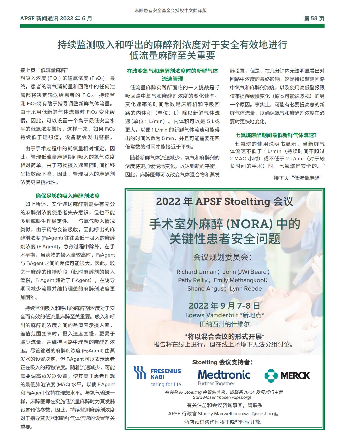 【APSF新闻通讯】患者安全和低流量麻醉