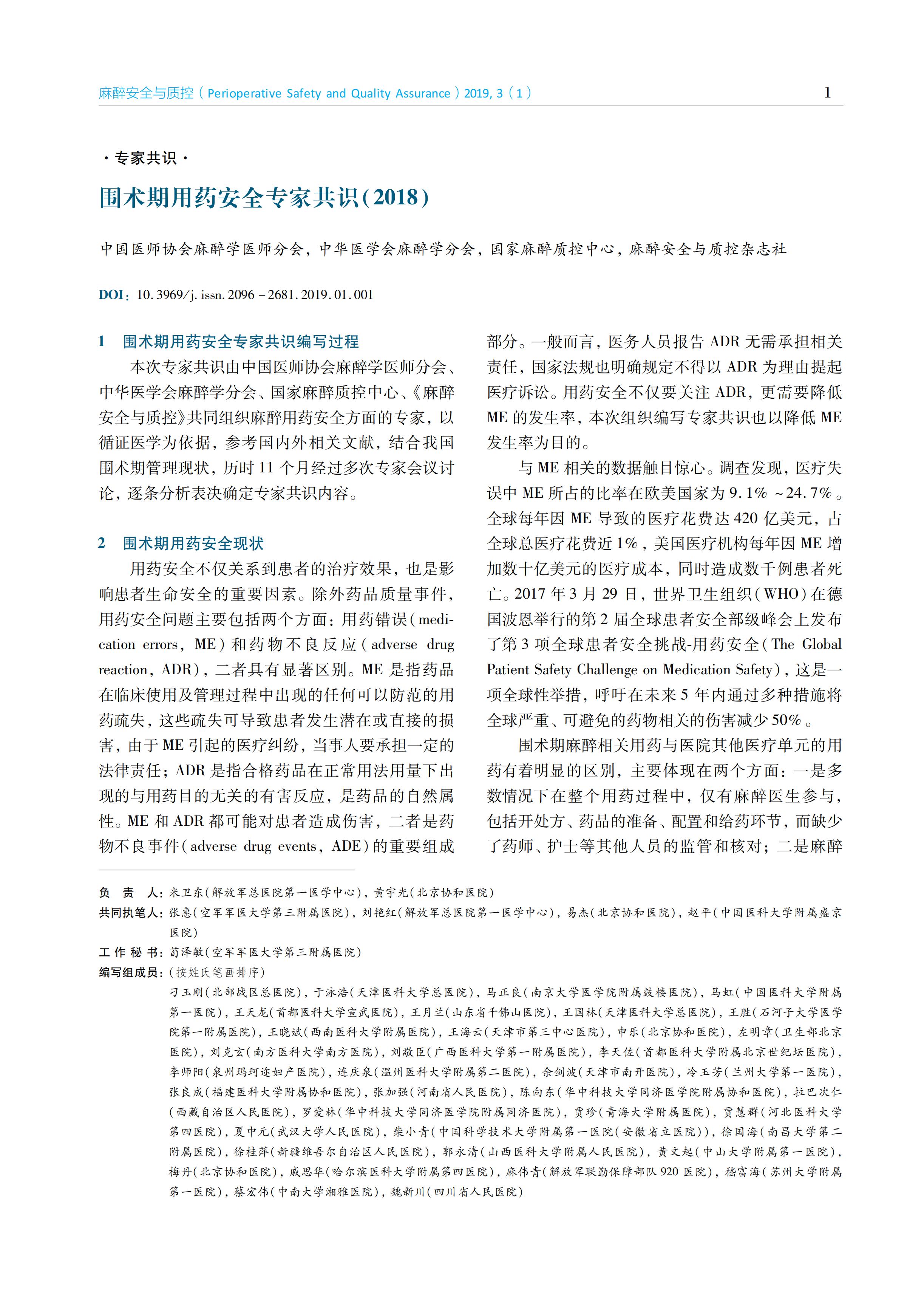 围术期用药安全专家共识(2018)