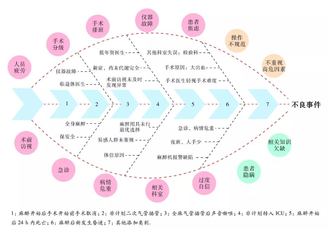 对上报的不良事件进行根因分析, 从人-机-料-法-环5个方面进行剖析, 画出鱼骨图, 寻找最根本的原因。