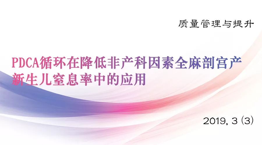 目的:通过PDCA循环管理, 提高产科麻醉质量, 降低新生儿窒息率, 保障母婴安全。