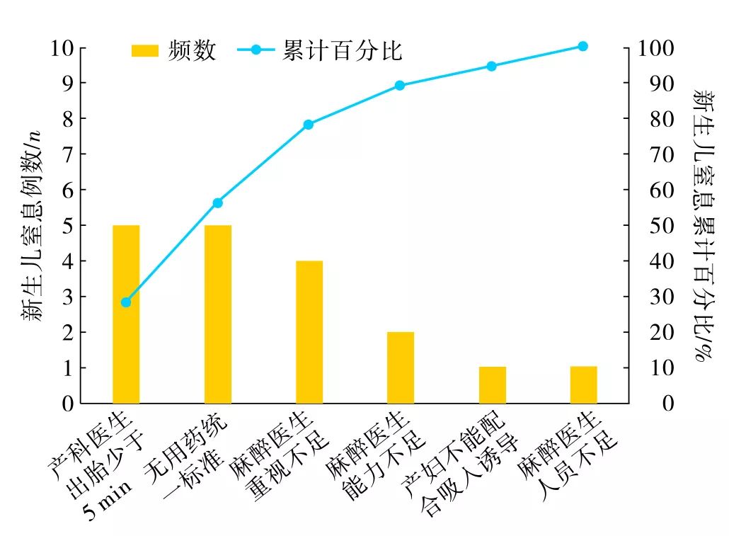 方法:选取广东省妇幼保健院2017-04/2018-04期间完成的74例非产科因素气管插管全麻剖宫产作为研究对象, 通过脑力震荡法, 选择降低非产科因素全麻剖宫产新生儿窒息率作为主题研究。对其中新生儿1 min Apgar评分<4分的8例病例进行原因分析、要因分析、真因分析, 制定对策方案, 实时进行检查、总结、论证并制定标准化流程, 指导临床麻醉方案。