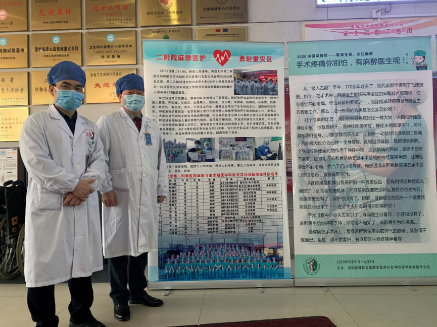 2019年3月30日至4月5日南昌大学第二附属医院麻醉与围术期医学科以第三届“敬畏生命,关注麻醉—抗击疫情勇担当,重症救治我护航”为主题,结合我院的优势特色开展了为期一周的麻醉相关知识宣传活动。