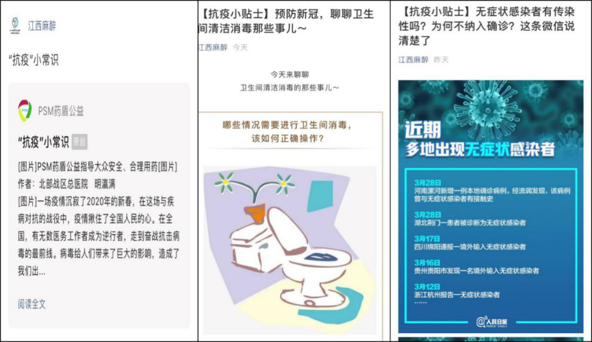 此外,在中国麻醉周宣传期内,南昌大学第二附属医院麻醉与围术期医学科在坚持做好疫情防控和积极配合渐增的手术麻醉工作同时,借助“江西麻醉”公众号的平台每天推送抗疫小常识,向全国百姓普及抗疫知识。