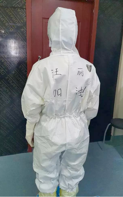 自治区人民医院麻醉科护士汪丽穿戴好防护用具准备进入病区