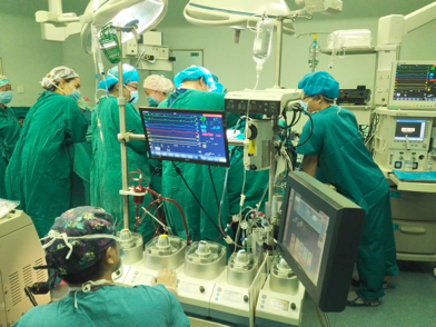 麻醉医生在一旁监控患者术中的所有生命指针