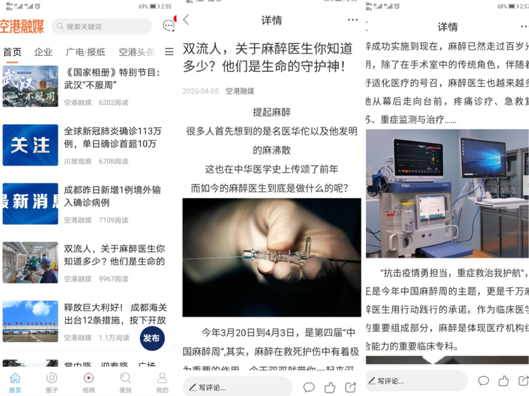 一、通过成都双流区官媒《空港融媒》发布了麻醉科普:双流人,关于麻醉医生你知道多少?他们是生命保护神的推文,点击量超过了一万。